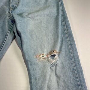 Levi’s 501 women’s straight leg denim jeans rigid fit distressed repair W28 L32