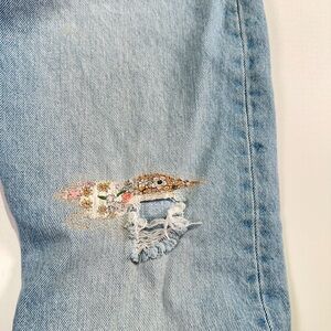 vintage denim edit, upcycled denim makeover, distressed denim jeans, levis 501 jeans, women’s straight leg denim, light wash jeans, rigid cotton denim, button fly jeans, visible mend jeans, floral patch jeans, classic denim outfit, 90s denim look, capsule wardrobe denim, heritage denim, relaxed straight leg jeans, everyday denim essential, soft minimal style, california casual, timeless denim style, spring denim outfit, fall denim staples