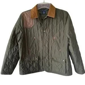 Ralph Lauren Olive Green Men’s Quilted Hunting jacket corduroy collar size L