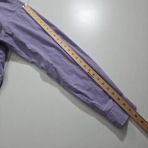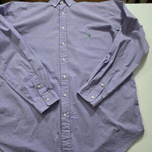 Color: multicolor: purple and white plaid with green pony on left chest area