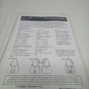 Sewing Pattern Indygo Junction Side Note Satchel IJ1137 Bag Purse