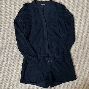 David Lerner Black Lace Long Sleeve Romper Dressy Night Out One-Piece Size S NWT