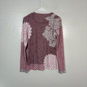 Whimsy Rose Shirt Womens Medium Pink Floral Bird Print Baby Waffle Top