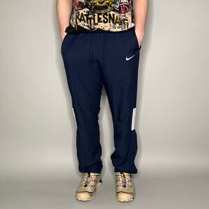 Nike Track Pants Navy Blue Polyester Sweatpants White Swoosh Lined