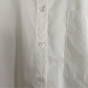 NWT Classic white button down collared shirt, with long sleeves and a chest pocket. The fabric is a lightweight, smooth and slightly crisp cotton blend with stretchy spandex blended for comfort. Comfortable and stylish. Neutral, versatile, lightweight.