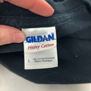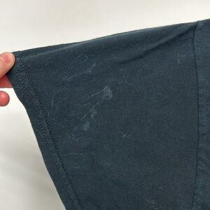 I’m pretty good condition. There is a spot on the right arm that might wash out in a spot on the back that might wash out size large 100% cotton hit to pit measurement is 21 inches from the top of the shirt to the bottom is about 26 inches