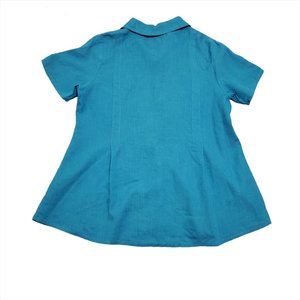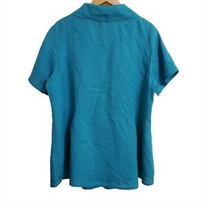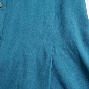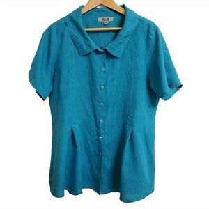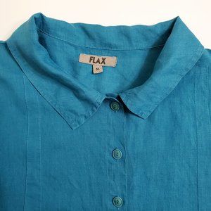 FLAX Womens Button-Up Shirt Tunic M Linen Short Sleeve Teal Blue Lagenlo…