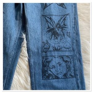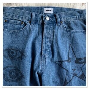 Blue Wash Button Fly Graphic Print Front Signature Logo Back Baggy Fit Hard Work Denim Jeans By Obey Size 30