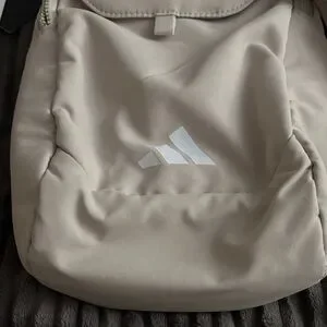 Chic Adidas crossbody bag in beige. Features iconic logo and compact design.