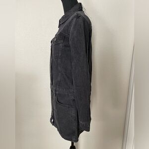 Lapel collar dress with long cuffed sleeves. Front pockets. Patch pockets at chest and back. Belt loops at waistband. Front metal button closure. *Brand new with tags. Authentic brand