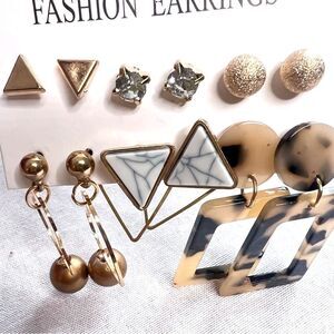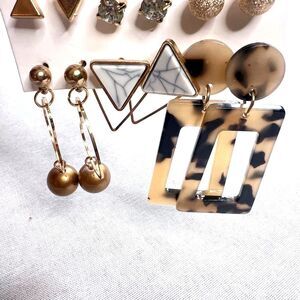 Fashion Earrings 12 piece Set Tortoise Shell Gold Accents dangle Holiday Gift