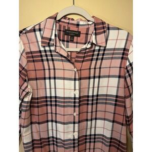 Banana Republic Women's Plaid Button Front Shirt Small Boyfriend Fit Pink Black