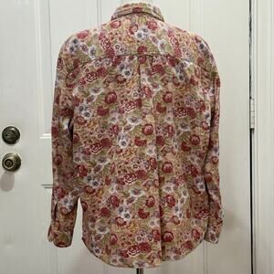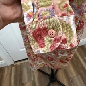 Lemon Grass womens Large floral print cotton micro-wale corduroy button up shirt