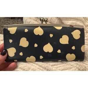 PAUL SMITH Rare Black and Yellow Heart Print Kiss Lock Clutch Bag/Long Wallet