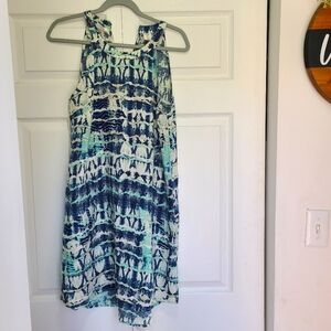 Nicole Miller Halter Neck 100% Linen Dress Blue Size Medium
