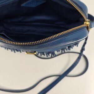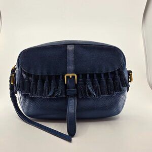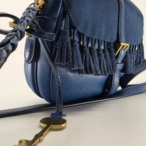 🗝️ Fossil Kendall Blue Suede Flap Fringe Crossbody ✨ Boho Western Bag 🗝️