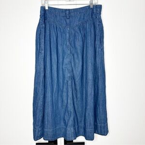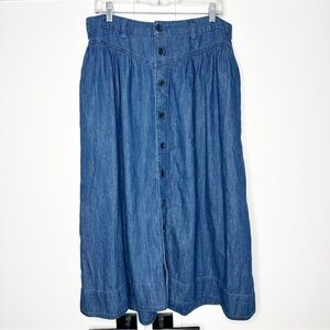 Gap Denim Western Yoke Midi Skirt 12 31 Dark Wash Cottagecore Rodeo Boho pockets