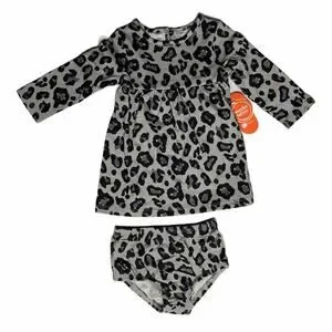 NEW Baby Girls Wonder Nation Long Sleeve Dress w/ Diaper Cover Gray Leopard 12M