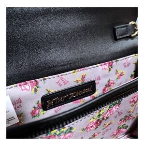 Betsy Johnson Black Bow Crossbody Bag | floral interior | Gold-tone