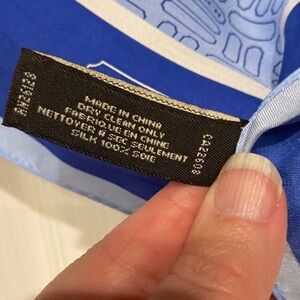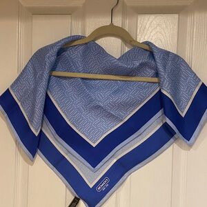 Stylish light blue scarf with geometric design. Ideal for a chic look.