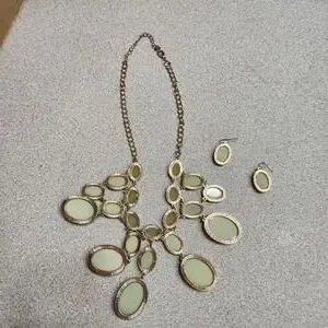 Charming Charlie Iridescent Oval Stone Necklace with Matching Earrings