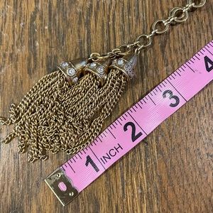 J Crew Necklace Gold Rhinestones Tassels Long Pendent Necklace