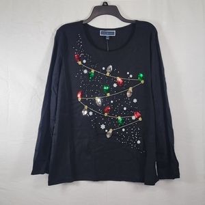 Karen Scott Graphic Christmas Holiday Lights T-shirt Black Large