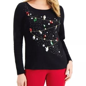 Karen Scott Graphic Sequined Christmas Lights Top