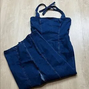 Defined by a feminine halter neckline, the Reformation Evita Denim Dress exudes casual elegance with a sophisticated midi length and flattering seamed detailing.