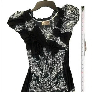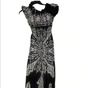 COPY - Beautiful V-Neck Floral Print, Black & White Maxi Dress