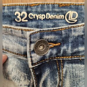 Crysp Denim Distressed Slim Straight Leg Jeans w/ Zipper Pocket Accents