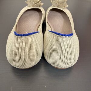 Rothy’s The Petal Square Toe Flats Metallic Beige Gold Womens Sz 9.5 Flower