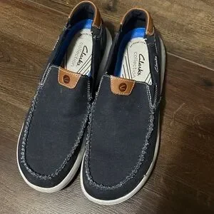 Clarks Men's Navy and Tan Slip-On Loafers size 9 new