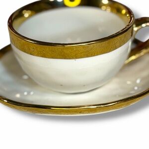 • Metallic gold trim on cup & saucer