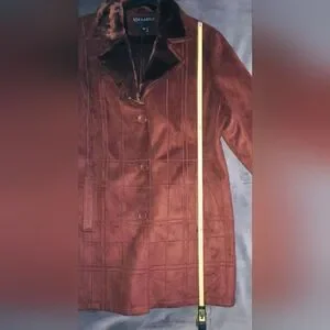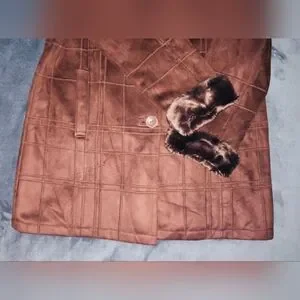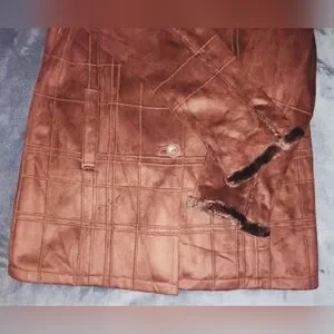 Luxurious faux fur lining. Rich brown color. Retro style pattern stitching. Perfect for warmth and style.