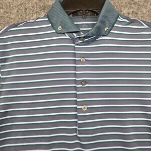 GREYSON Men's Golf Polo Shirt Striped Short Sleeve Collar Button Neck S