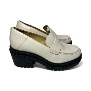 Michael Kors Women's Rocco Slip-On Platform Heeled Loafer, Light Cream, 8.5 Lug