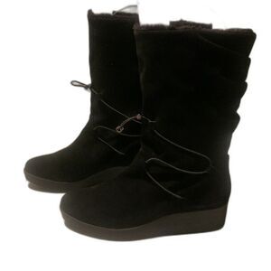 H by Halston Women's Leather Suede Black Boots with Faux Fur Size 10 Wedge