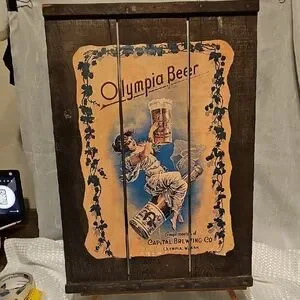 Vintage Olympia Beer Advertisement On Reclaimed Wood.