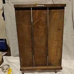 Vintage fair to good condition. First board is warping. A new piece of wood stapled to back will make it good. (personally I would give it a good careful cleaning and then hit is with a lacquer spray to protect it and will be great for years to come)