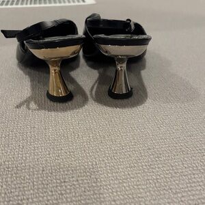 Chic black slingback heels with unique gold and silver heel design. Perfect for elevating any outfit.