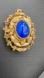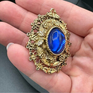 Fancy Ornate Blue Sapphire Colored Lucite Filigree Brooch with Bale in Victorian inspired style