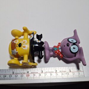 These two quirky little figures are rocking their unique styles. The purple one is acing the nerd-chic look upside down, while the yellow sheriff seems to have had a run-in with the breakfast section—sunny-side up eyes included! They're here to add a double dose of whimsy to your shelf.
