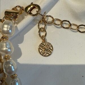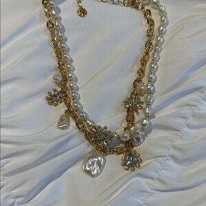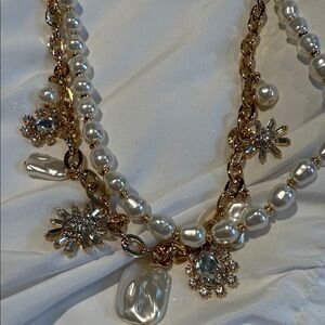 This stunning necklace features a blend of gold and pearl elements, perfect for adding a touch of elegance to any outfit. Like New.