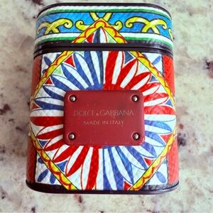 Dolce & Gabbana Logo Apple AirPods 2 Headphones Multi Color Leather Case W/ Box