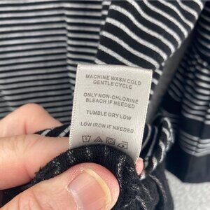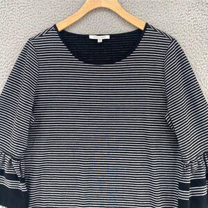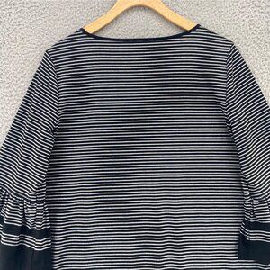 John Mark Top Womens Medium Black Striped 3/4 Bell Sleeve Stretch Knit Pullover