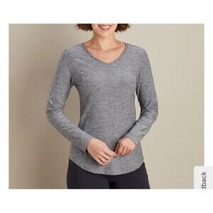 Duluth Trading Women Armachillo long Sleeve V-Neck Large comfy Gray T-Shirt #67