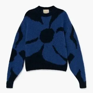 Hana pullover sweater in dark navy by Paloma Wool is a classic all day, every day knit. The sweater features navy and blue flower pattern. So warm and soft you will live in it. More photos coming of actual garment!