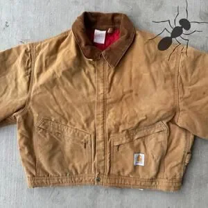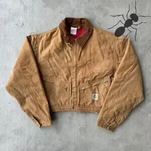 Vintage Y2K Carhartt brown cropped Detroit style work wear jacket. Nice one! Light stains throughout. Measures 26x22. Please check measurements before purchasing. I do my best to show any flaws in pictures. Quick shipping! Bundles encouraged!