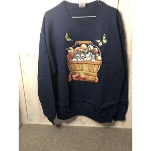 Jerzees Womens Large Sweatshirt Navy Blue Basket Kittens Cats Apples Butterflies
